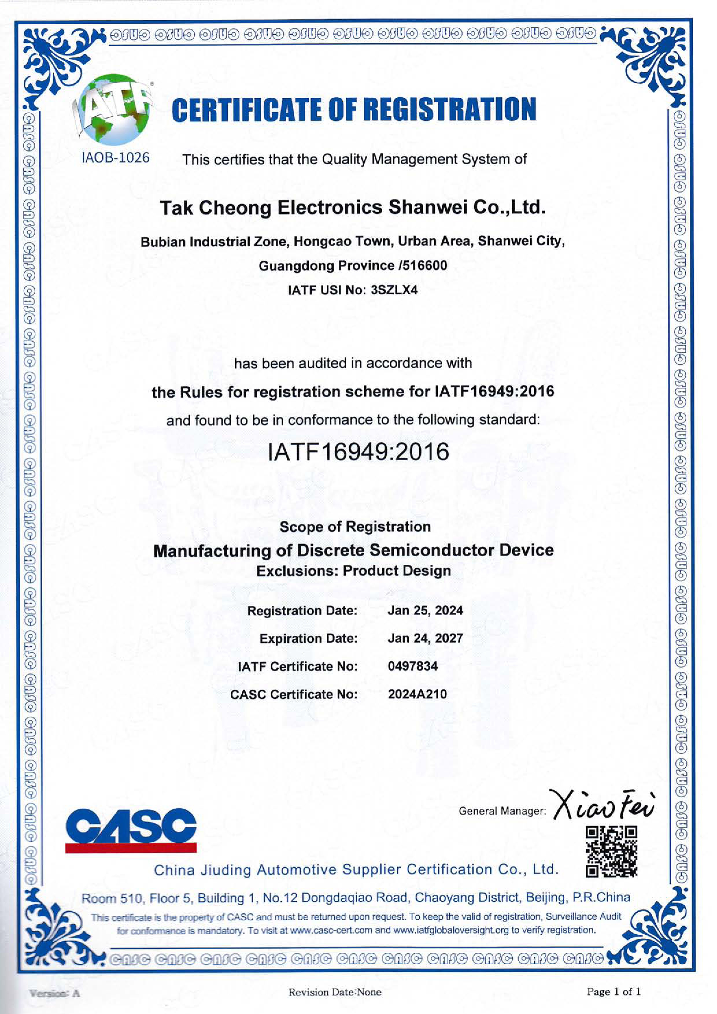 Tak Cheong Electronics (Holdings) Co.,Ltd.